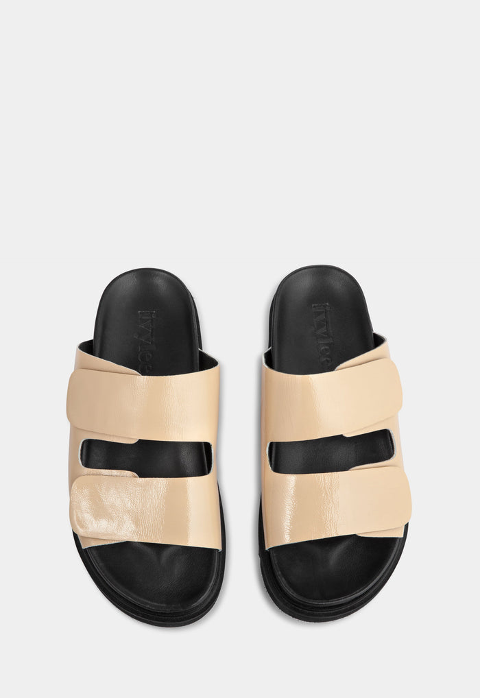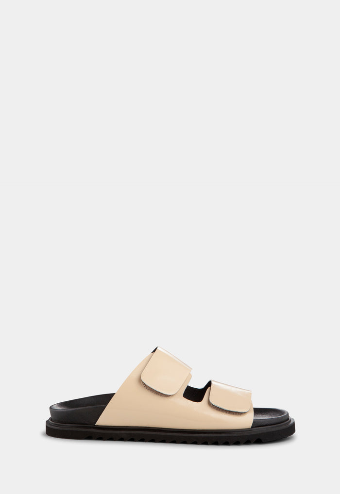 The Ivylee slides are a cult favourite. This version is made from wrinkled patent leather, closes with adjustable velcro and is grounded on chunky and cleated soles. Slip yours on with everything from jeans to dresses.
