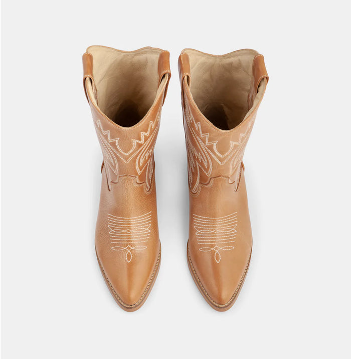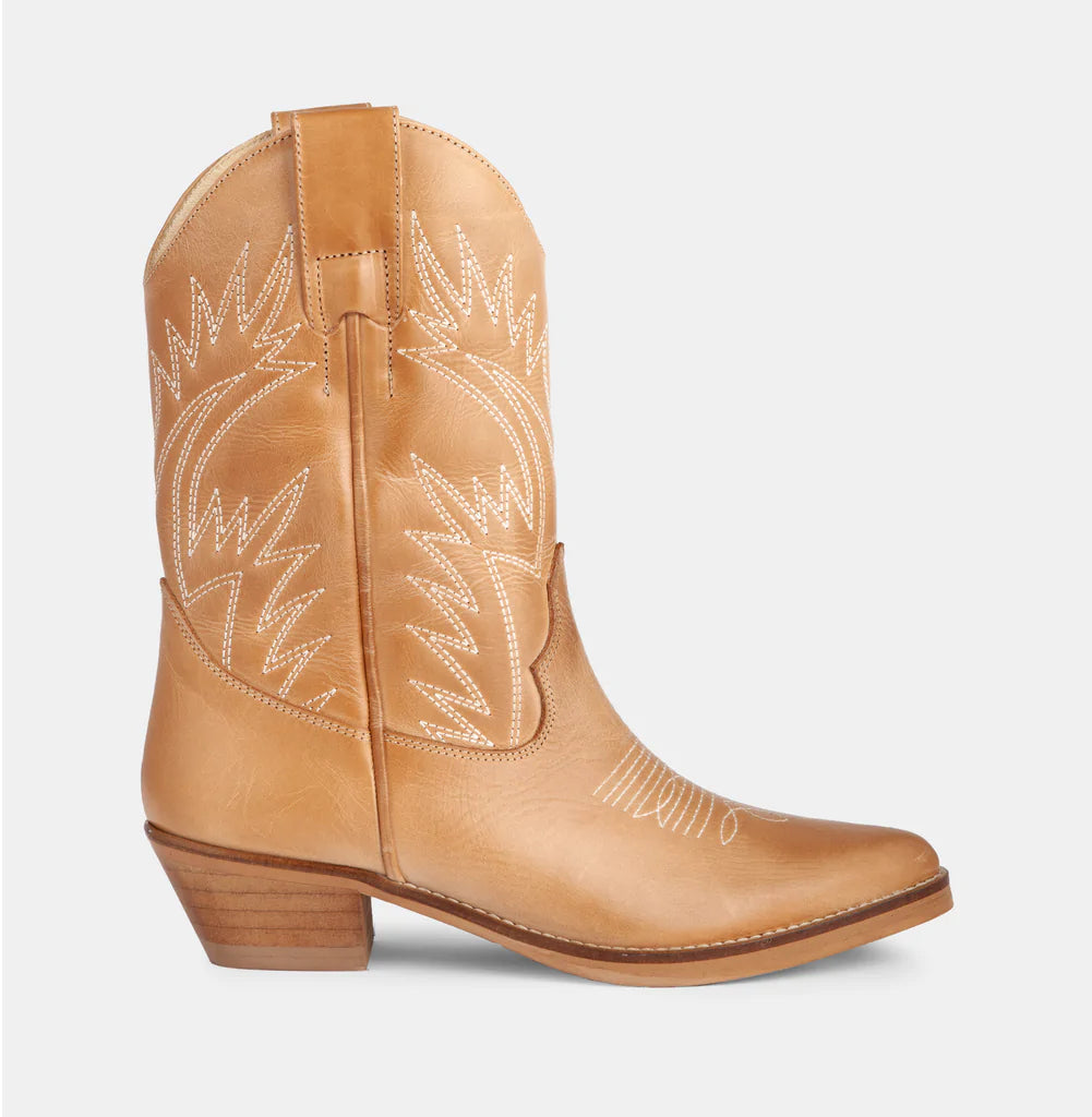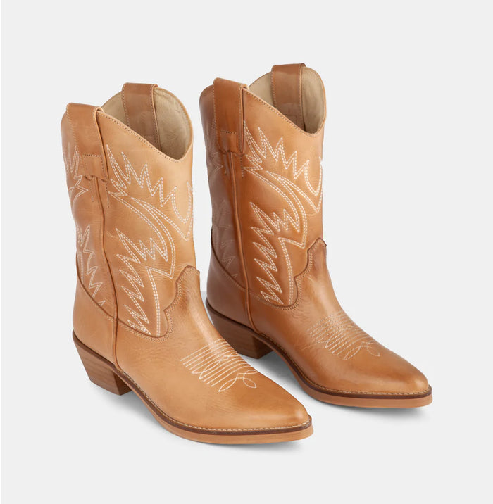 An extraordinary cowboy boot, the Frances Boot has a pointy nose, beautiful white contrast stitching on arch and shaft and a comfortable heel.