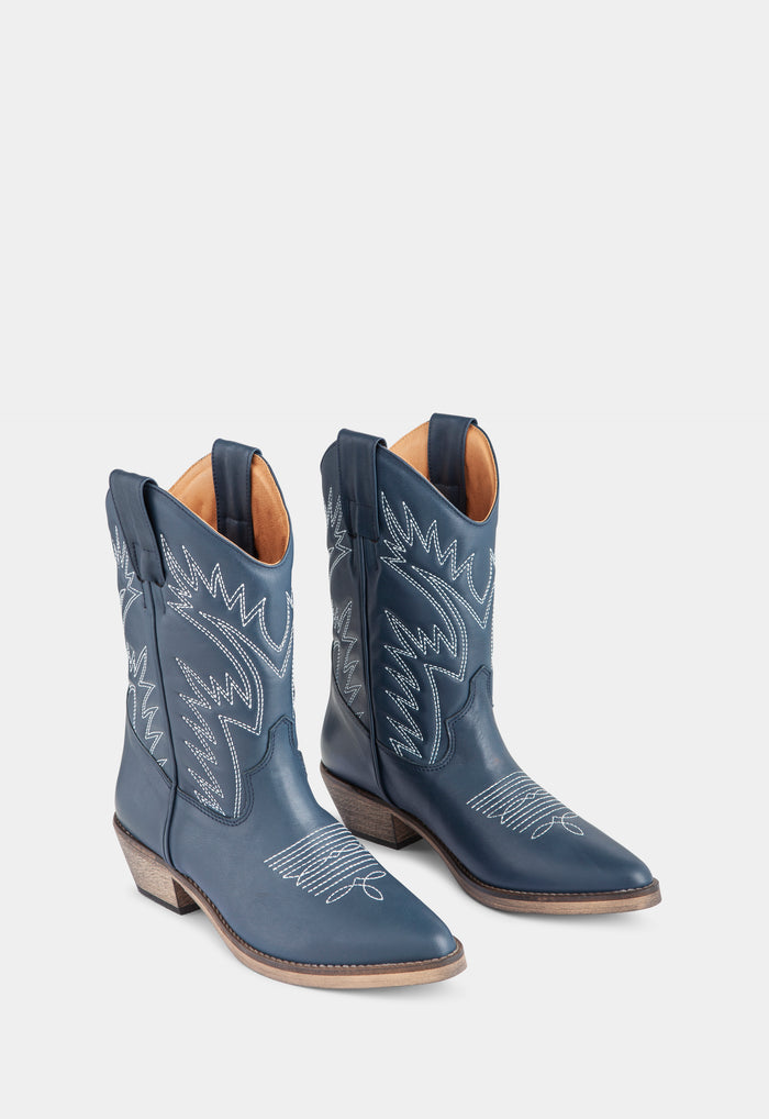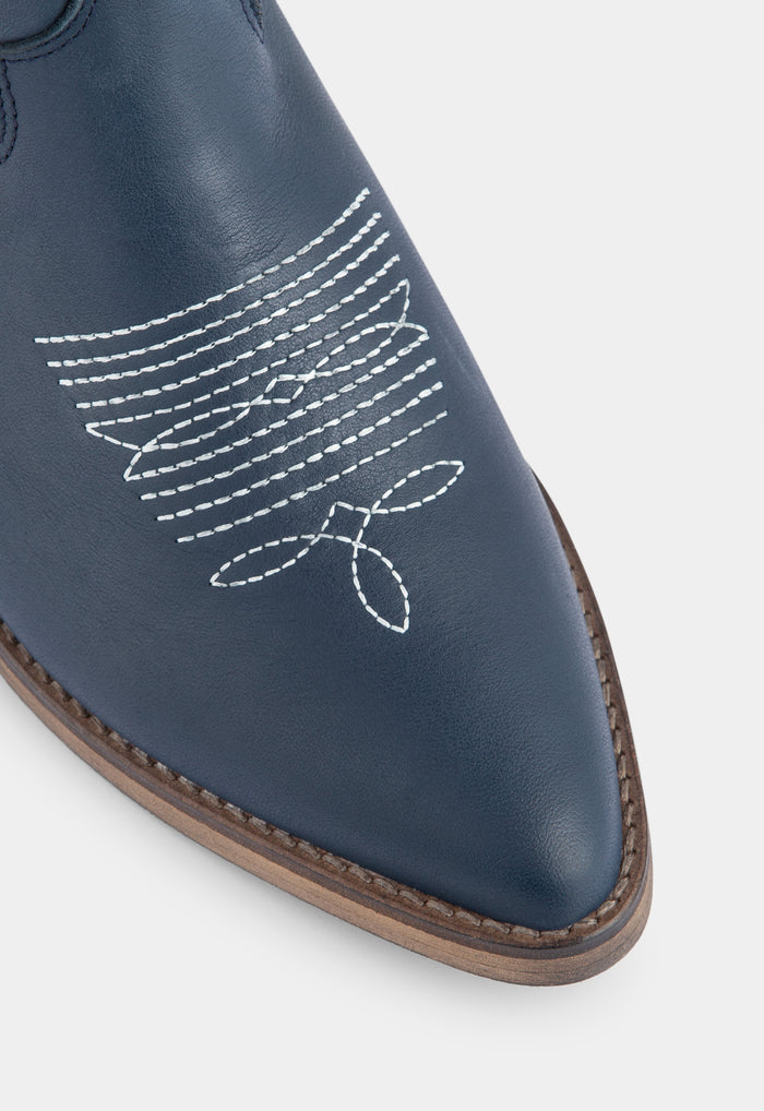 An extraordinary cowboy boot, the Frances Boot has a pointy nose, beautiful white contrast stitching on arch and shaft and a comfortable heel.