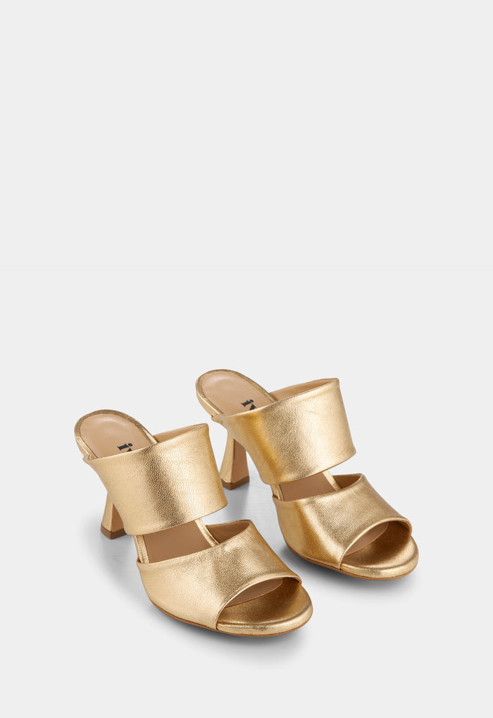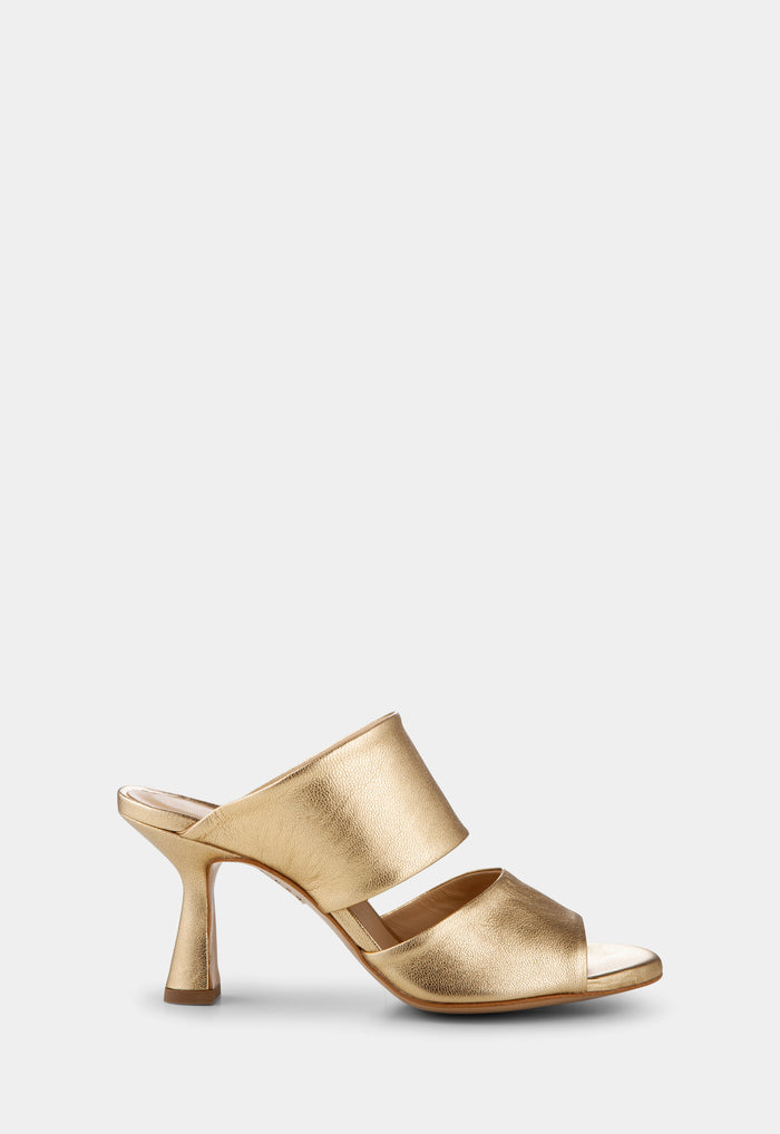 The timeless slip-on Marilyn’s have been made in Portugal from leather with a metallic coating for a sparkling party look and lined with leather. With two wide straps, they’re set on signature kitten heels, and open toes will showcase a fresh pedicure.