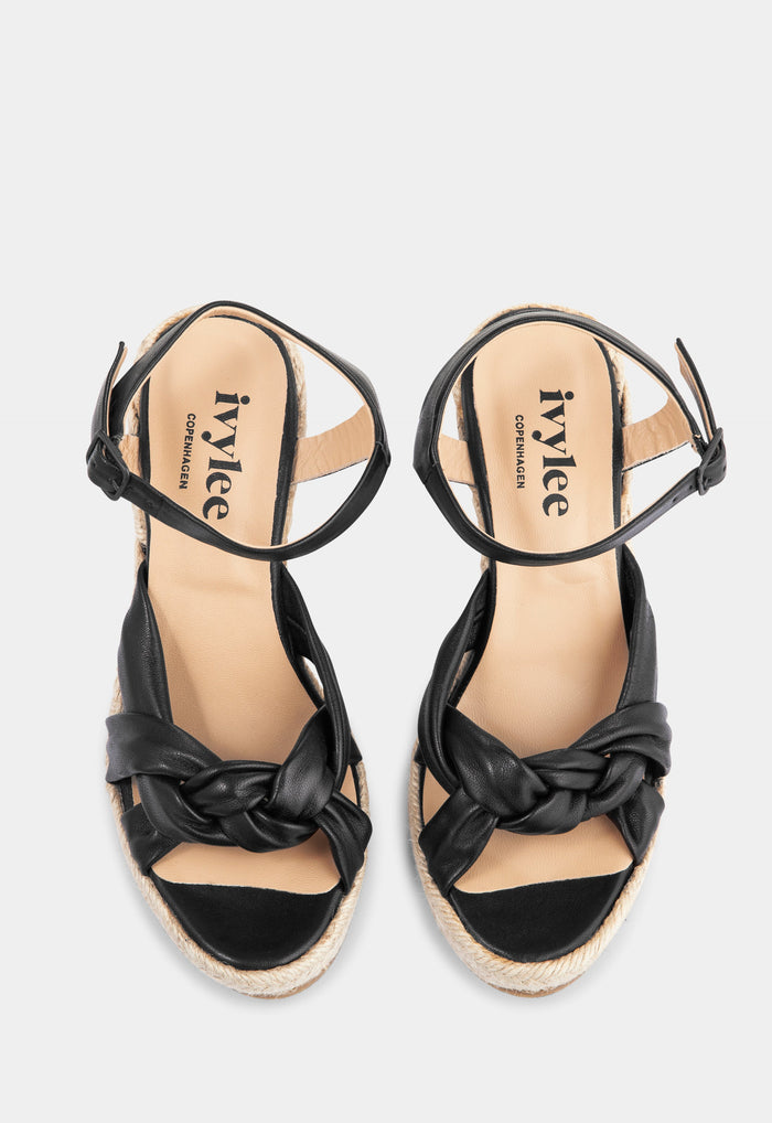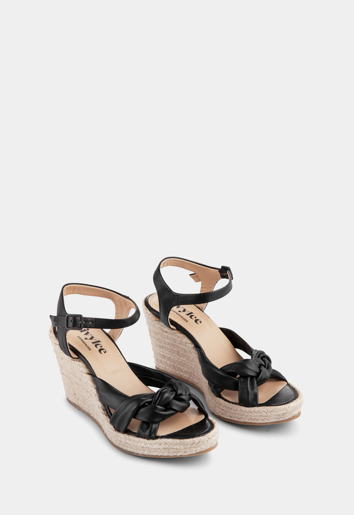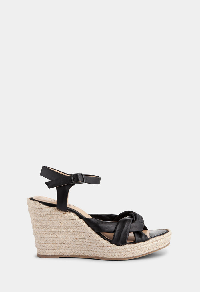 With twisted straps in buttery soft nappa leather that wrap beautifully around the foot, the Melissa espadrille is set on a braided jute wedge. It closes with an adjustable ankle strap with a metal buckle.