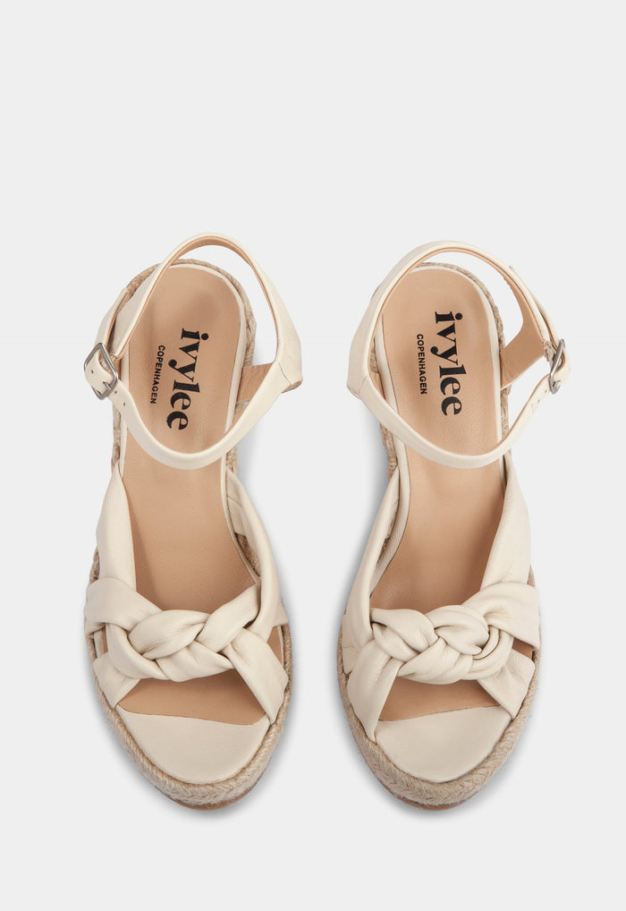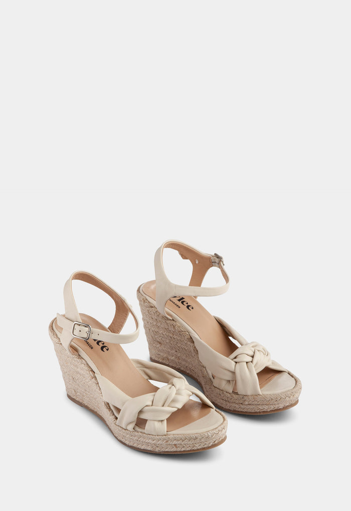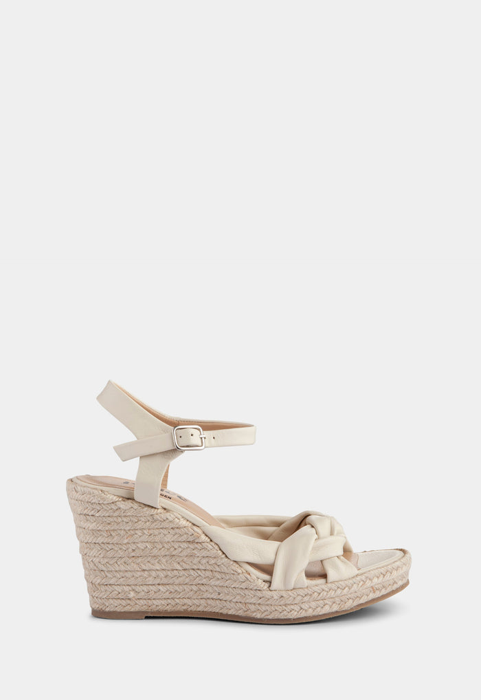 With twisted straps in buttery soft nappa leather that wrap beautifully around the foot, the Melissa espadrille is set on a braided jute wedge. It closes with an adjustable ankle strap with a metal buckle.